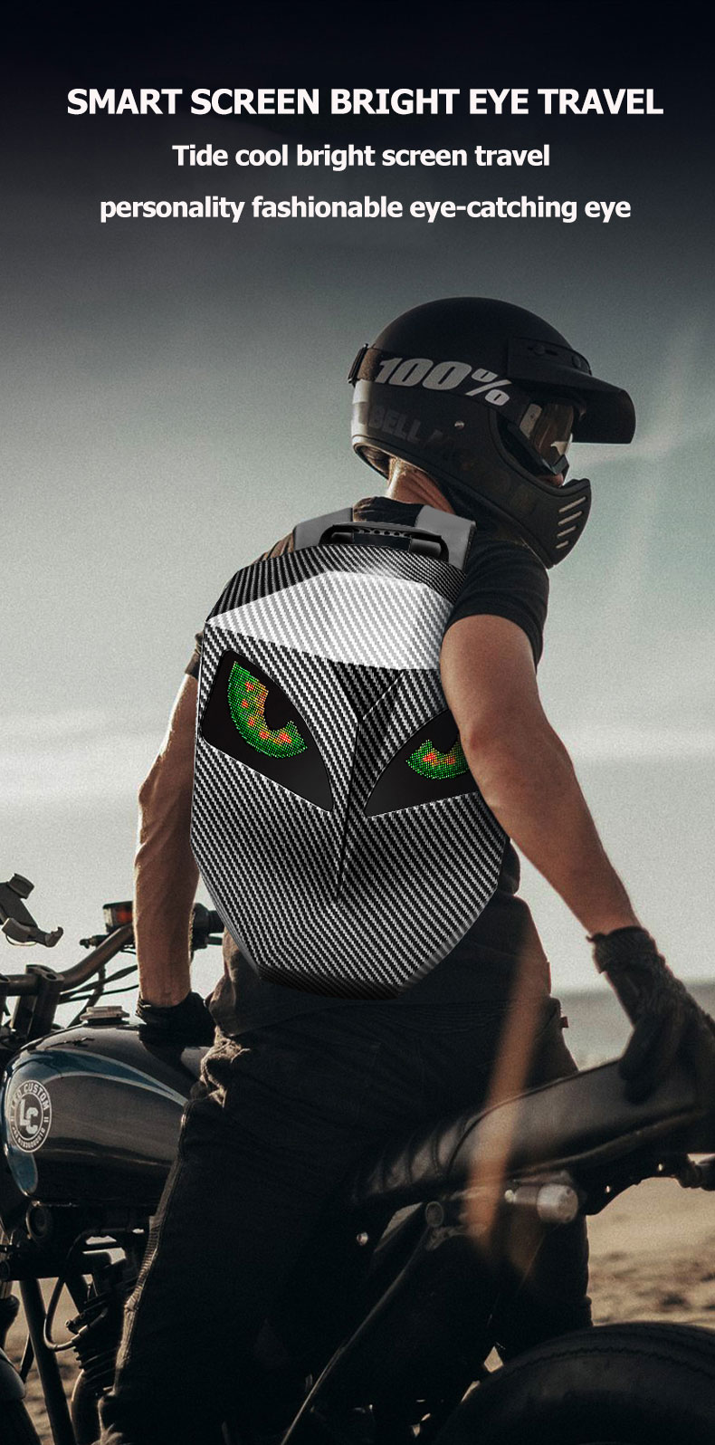 LED ストリート トレンディ バイク バックパック クール ライダー バイク ヘルメット バックパック 旅行 発光スクリーン アイ バックパック