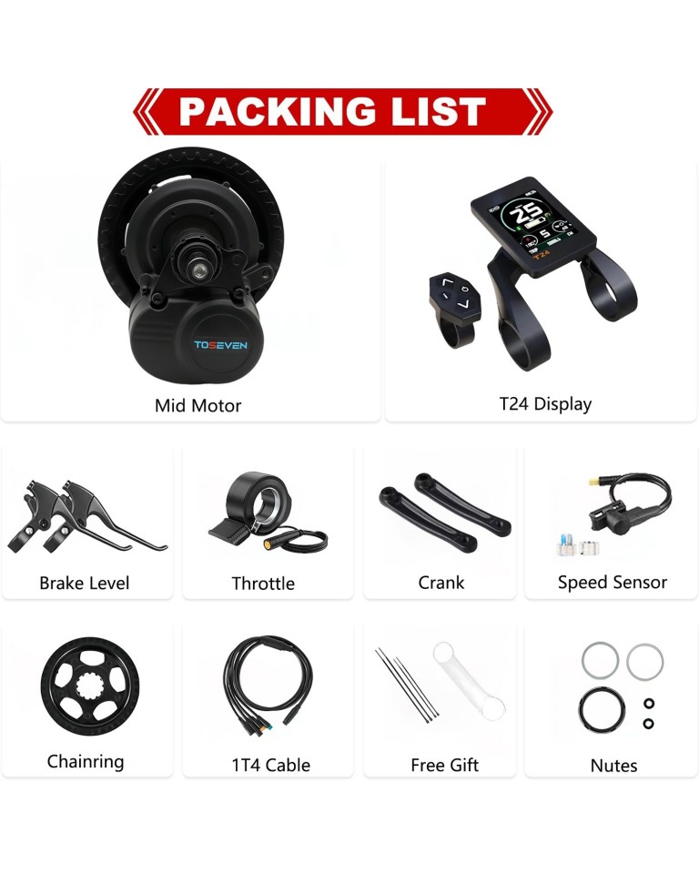 Toseven DM02 Ebikeモーターキット 48V 500W ミッドドライブモーター 電動自転車 ブラシレス トルクセンサー DIYコンバージョンキット BB68バイク用