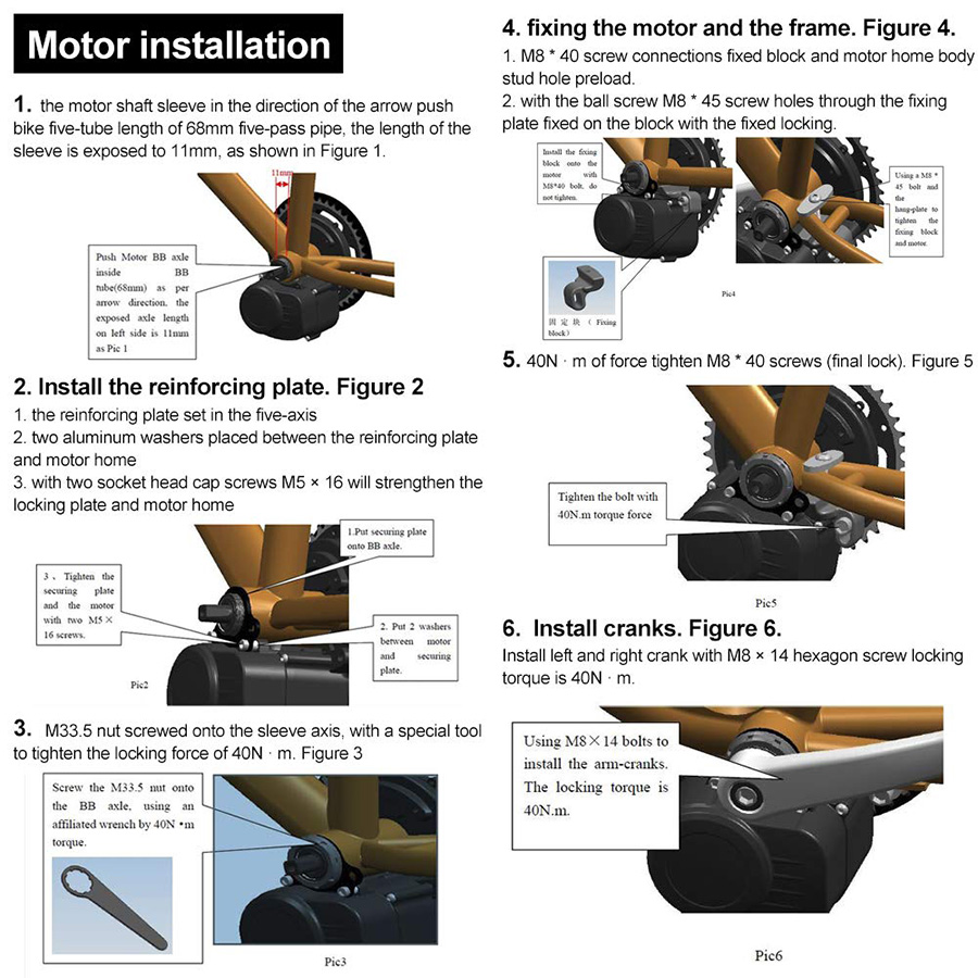 2. 미드 모터 TSDZ2B 부하가 없으면 모터가 작동하지 않으므로 손으로 테스트하지 마십시오.