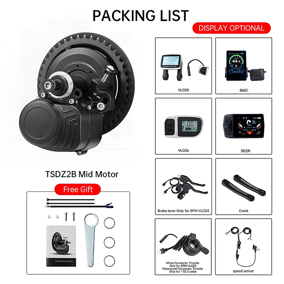 Tongsheng TSDZ2B 미드 드라이브 키트 36V 48V 토크 센서 DIY 변환 Ebike 엔진